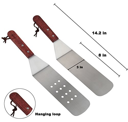 - 【Commercial Grade Griddle Accessories & Dishwasher Safe】Our griddle kit is made with top quality stainless steel and well polish finished, getting the construction durable, easy to clean and long lasting. It is a must have set to make cooking on a griddle easier and more fun.