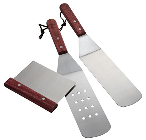- 【Multi Purpose Stainless Steel Spatulas Set】Chopping and turning vegetables as they cook on the griddle is easier with an elongated spatula. The stainless steel spatulas of the griddlin' kit are ideal for cooking a variety of foods. Use the horizontal scraper to chop vegetables and meats directly on the griddle, and for scraping it clean when the cooking is done.