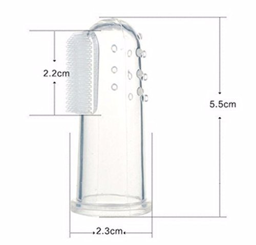 • Item Type: Pet Tooth Massage Brush • Material: Soft Silicone FDA Approved • Color: Clear • Length: approx. 55mm/2.17" • Bristle Area: approx. 20x10mm/0.79x0.39" • Bristle Length: approx. 4mm/0.16" • Inner Diameter: approx. 16mm/0.63"