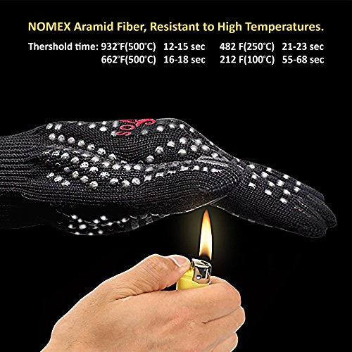 - ★ EXTREME HEAT RESISTANT GLOVES- The grill gloves can withstand tempreture to 500 C/932F.Offers maximum protection, keeping a firm grip and protecting your forearms while reaching deep into your oven, bbq grill or fireplace