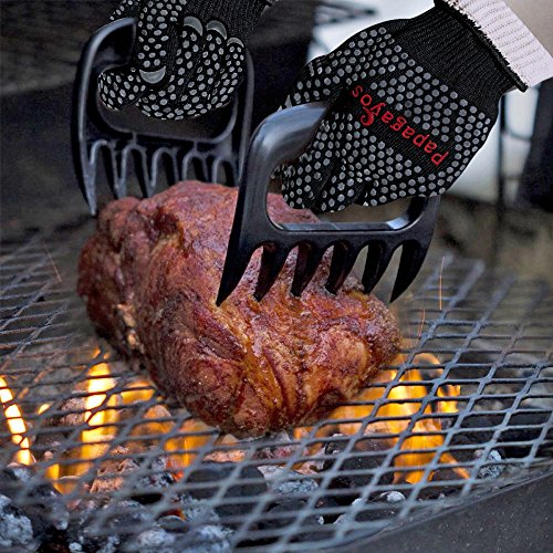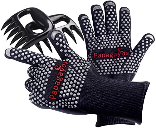 Papagayos BBQ Grilling Cooking Gloves, 932°F Heat Resistant Kitchen Oven Mitts Gloves, Barbecue Gloves for Men Women, EXTRA Length Forearm Protection, 1 Pair of Meat Claws