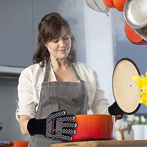 - ★ SOFT, BREATHABLE & COMFORTABLE- The outer layer of these grilling gloves is made of Meta Aramid fibre for durability, while the inner layer is made from of super soft cotton for more comfort and flexibility. Breathable lining also prevents excessive sweating especially if you're barbecuing outdoors. It won't leaves some strange chemical smell on the food.Machine washable for easy and convenient cleaning.