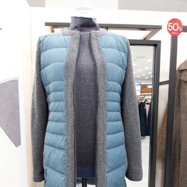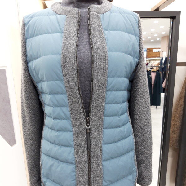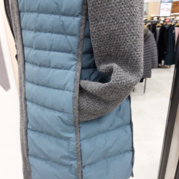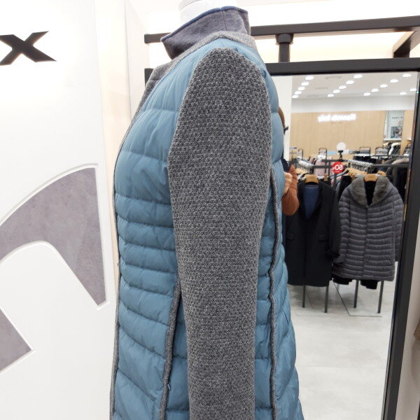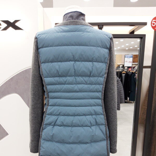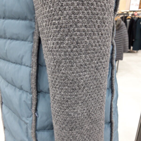 구스충전제와니트 콜라보 디자인 입니다 목선이 라운드 니트처리로 스카프나워모 연출이 예쁘게 하실 수 있어요 누빔이 슬림해보이고 캐쥬얼 스타일 청바지 등과코디가 잘 돼요~~♡