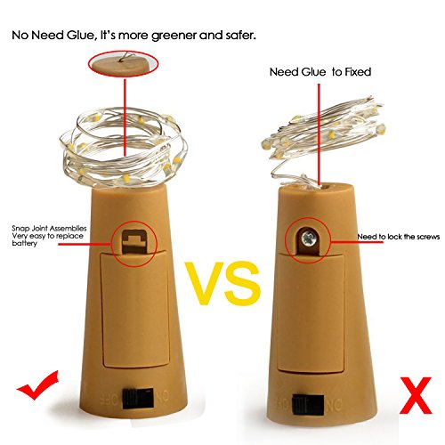 - ☑ 【Waterproof】: The 6.5ft copper wire string lights is waterproof material(the cork not waterproof) , so you can drop the copper wire lights of 20 led lights inside an empty wine or liquor bottle , a really good classy set of conversation starter lights for your party, barbecue or gathering;