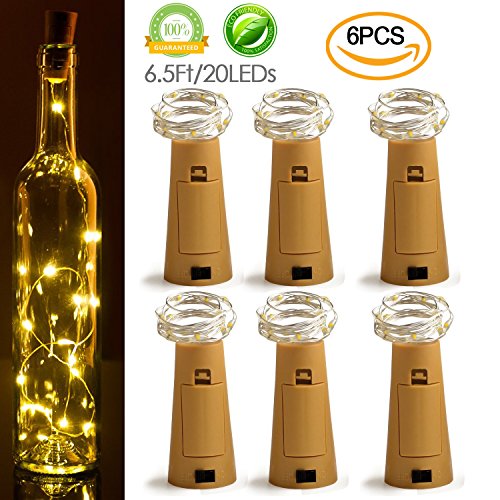 [6-PACK] Cork Bottle Lights,20LEDs Fairy lights 6.5Ft Copper Wire Fairy String lights for any Bottle, Party,Wedding Decor (Warm White)