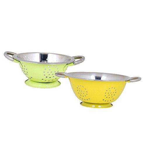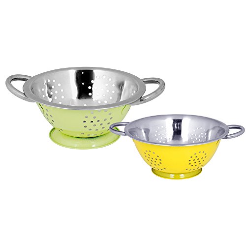 Kosma Stainless Steel Set of 2 Twin Handled Deep Colander | Kitchen Colander | Pasta Salad Fruit Food Strainer - Mirror Finish Inside with a brilliant colour outside - Yellow 20cm, Lemon Green 24cm