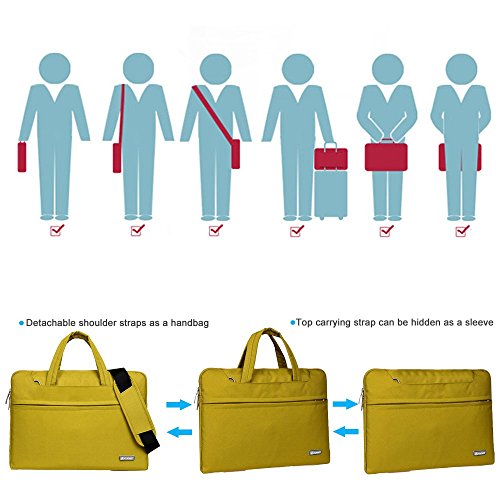 -. Feature : Size:12.4" x 9" x 1.18", weight: 10 ounce.Suitable for most popular 11-11.6 inch MacBooks / laptops / notebooks / Ultrabooks; may not snugly fit all computers due to variations in the sizes of different models.Can put on Lage Trolley Bag / Front pocket of the case is ideal for storage of small items such as power adapters, cables, pens and notepads, offering added convenience,Slim and lightweight; does not bulk your laptop up and can easily slide into your briefcase, backpack, or other bag. / Padded laptop compartment,Easy access quick stash front pocket.Classic two gusset business briefcase is crafted of red nylon for lasting durability.Features padded laptop compartment that fits laptops / Features a polyester foam padding layer and fluffy fleece fabric lining for bump and shock absorption and protection of your computer from accidental scratches / Includes easy-access, quick-stash front pocket, wrapped bale carry handles and padded removable adjustable shoulder strap.Wrapped bale handles for comfort.SmartPocket slides over upright handles for easy mobility
