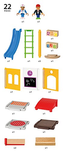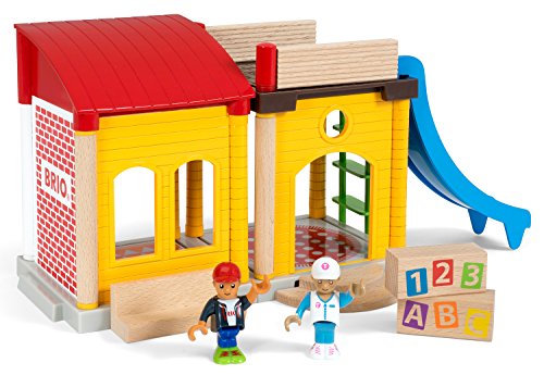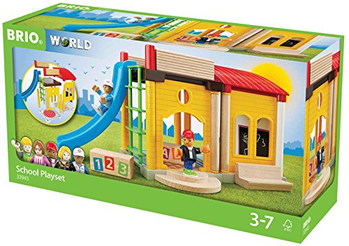 The School Playset consists of several different modular pieces for customizing, just like the Family Home Playset, but in other colors. Let your children engage in role playing in an environment they are familiar with. Village is a NEW theme within the BRIO World concept – filled with play values and experience. The Village encourages social roleplay and invites children to play together by telling stories from their everyday life. The Village theme consists of several modular toys like a house, school, singing stage and ice cream stand. This theme offers suggestions but encourages children to create their own settings. A variety of different characters help to get the roleplaying started. All pieces of the Village theme are modular-scaled to fit the rest of the BRIO World and can easily be connected and expanded with the other themes in the BRIO World. BRIO creates innovative, high-quality and well-designed toys with clean, simple designs that spark children's creativity and imagination while encouraging and supporting each stage of their development. For over a century, our mission has been to create happy childhood memories. All wooden parts are made from 100% FSC-certified beech wood from sustainably managed forests and are built to last for generations.Feature