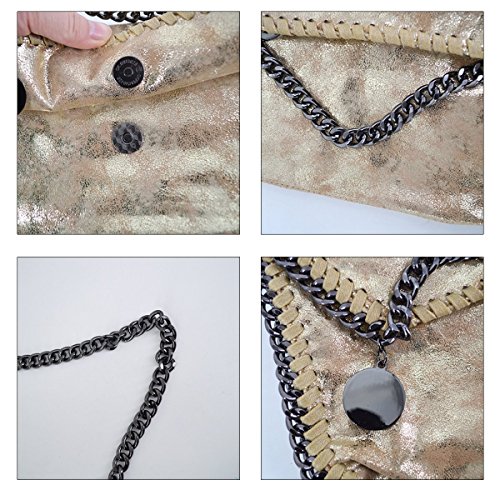 - Durable Leather Messenger Bag- Material: Made with soft PU leather , strong and durable;solid-colored fabric lining, Gold-tone Hardware Accessories;durable metal Chain Strap.