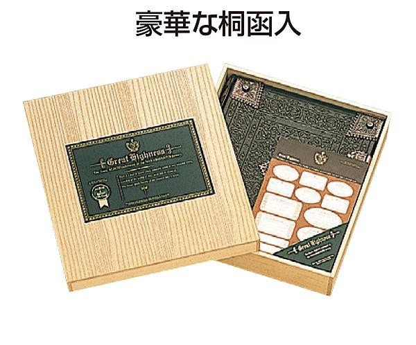 | 仕様 | ■ブック式製本 ■台紙:100年台紙(アイボリー)×25枚 ■貼付有効サイズ:タテ315×ヨコ235mm ■高級桐函入り |