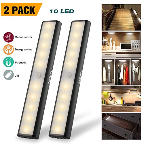Package includes: * 2 x Rechargeable LED Motion Sensor Lights(Warm White Light)