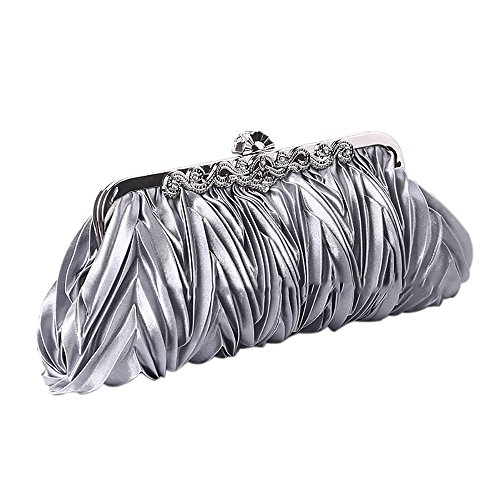 Pleated satin design with shining rhinestone, fabric linning, design for handle, stainless steel short (15.75")and long(47.24") strap chains, satisfy to different occasions