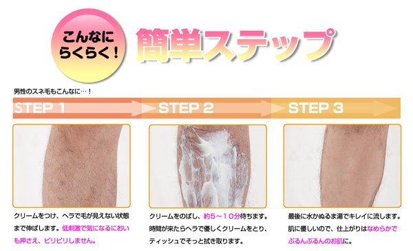 2.5~10分間放置した後、付属のヘラ、脱脂綿、ガーゼ等で擦らずにクリームをよく取り除き、その後除毛した部分を湯水等でよく洗い流してください。