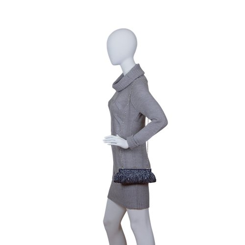 When you have that special outfit, you want a magnificent bag to match. The Sharon evening bag, an exclusive Carlo Fellini designer bag, is the popular choice. We gave this design an array of delicate sequins and beads that overlap as they stretch across each other, on the bag's exterior. We also gave this bag a lovely kiss closure. Look inside for the handy side pocket. Wear this bag over the shoulder with its optional detachable chain, or clutch style. Every stunning dress deserves a Sharon evening bag for its debut.Feature