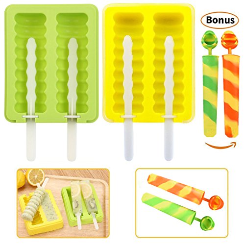 NDHT Ice Lolly Moulds, Silicone Pop Mold Ice Cream Moulds with Lids, Bonus(The bonus' color in random) 2 Ice Pop Moulds,Set of 2