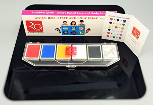Rainbow Glow Face Paint Kit for Professional Adults, Non Toxic Hypo Allergenic & Kids Safe Long Lasting, Easy to Wash Off