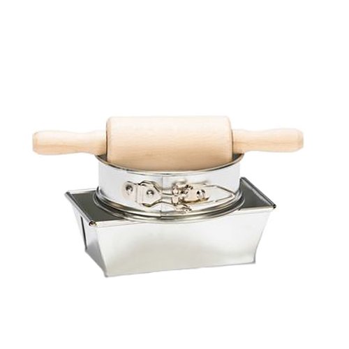 - Set includes: 1 oblong-shaped baking tin, 1 round springform with quick release clip and 1 Beechwood wooden pin roller