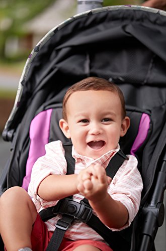 Canopy shades your child and peek-a-boo window keeps you connected; 2-position reclining seat; 3- or 5-point harness grows with your child; removable child's tray with cup holder for no-fuss stroller entry