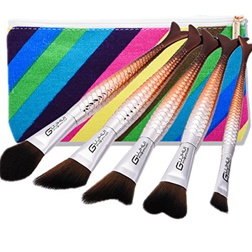 Makeup Brush Set tools,Scofieldly 5pc New Mermaid Cosmetic Brush Set Makeup Tools Makeup Brush with Storage Bag