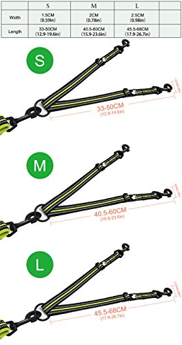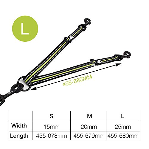 Products Features 1. Walk to two dogs with one double dog leash. Double dog leash for big dogs and small dogs, or both! No point in buying a dog retractable leash if you have two dogs, just buy one double dog leash. 2.Adjustable 3M reflective webbing Comes with extra strength 3M reflective webbing and adjustable leash parts for making walking two dogs easy and safe. 3.Stainless steel O-ring Tangle resistant design with a strong Stainless steel??O-ring and Zinc-alloy hooks makes it easy to keep dogs on leash.The tensile strength of stainless steel O-ring is up to 8000 N. SIZE INFORMATION Size?????????????????Width?????????????????????Length S ?????????????1.5 cm/0.6in ???????33-50 cm/13-19.7in M??????????????2.0 cm/0.8in ???????40-60 cm/16-23.6in L ??????????????2.5 cm/1.0in ???????45-68 cm/18-26.7in 0 |