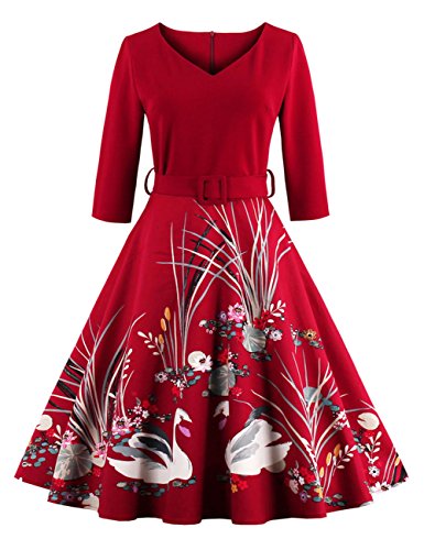 -. Title : Yesfashion レディース フォーマル ワンピース ドレス 花柄 フレアワンピース レトロワンピース Vネック Aライン ひざ丈 長袖 シルエット パーティー 結婚式 発表会 お呼ばれ 大きいサイズ対応
