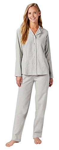 Coyuchi Women's Cloud Brushed Organic Flannel PJ Set, Medium, Pale Gray Heather