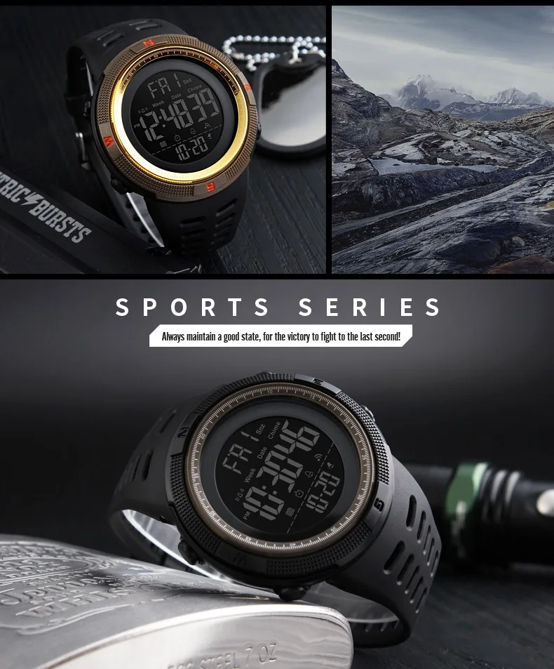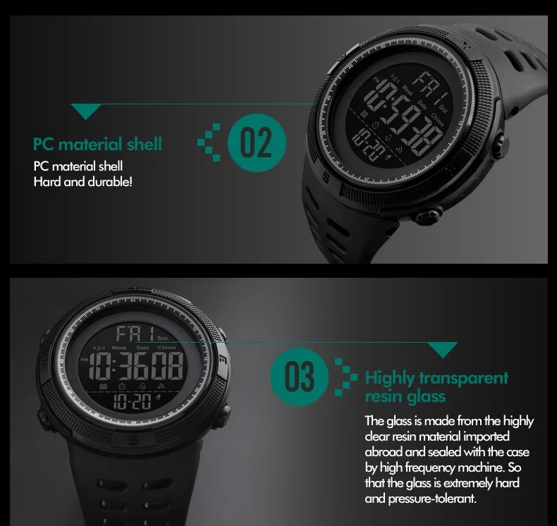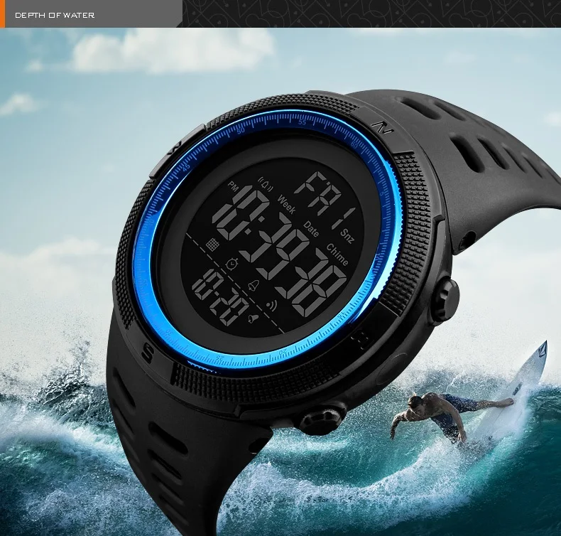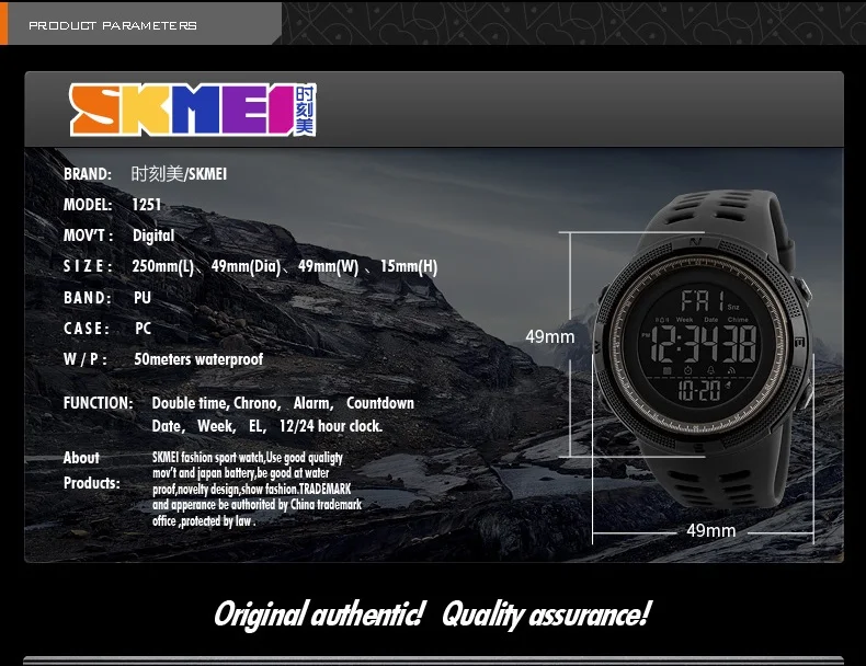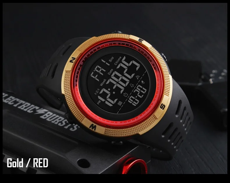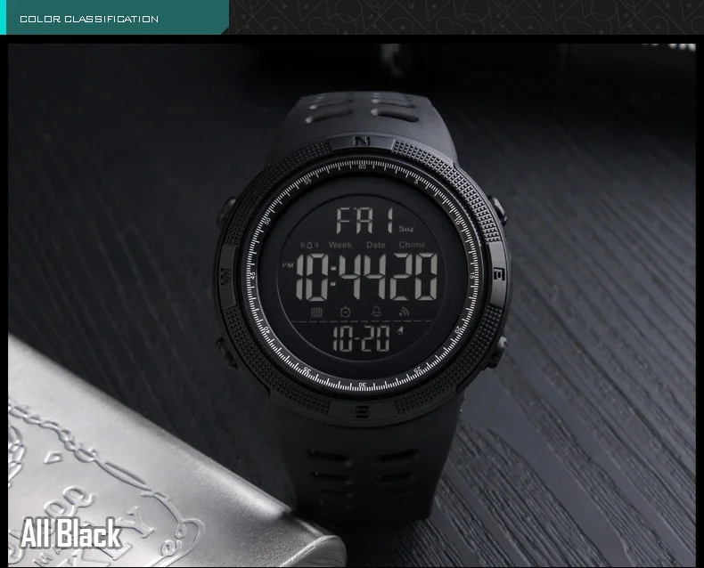 Feature:Alarm,Back Light,Water Resistant,Multiple Time Zone,Chronograph,Shock Resistant,Stop Watch,Complete Calendar,Auto Date,LED display