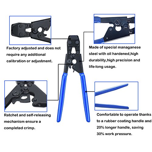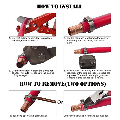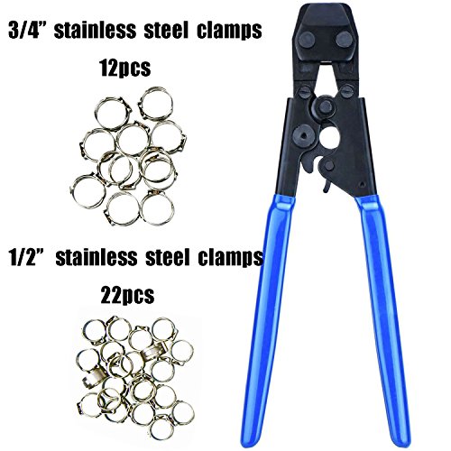 Jinwen 120017 PEX CINCH Crimping Tool Crimper for Stainless Steel Clamps from 3/8"to 1" with 1/2" 22PCS and 3/4" 12PCS SS PEX Clamps (02)