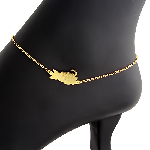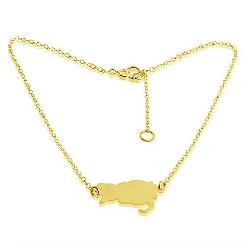 -. Title : Azaggi Gold Plated Sterling Silver Handcrafted Cute Kitty Cat Anklet