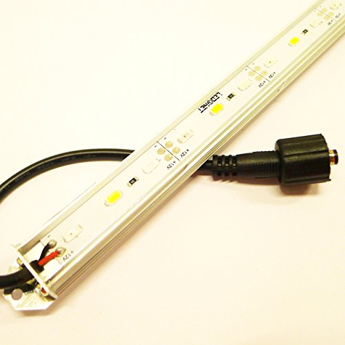 Each LED strip is 7.2 watt, 12V DC and measures 12 Inch long * 0.7 Inch wide * 0.4 Inch high.