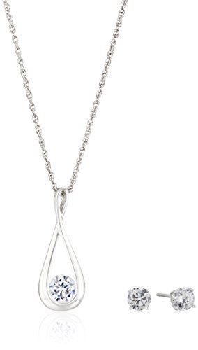 -. Feature : Necklace: 18"L x 1"H x 0.38"W; Earrings: 0.2"H x 0.2"W / A sterling silver infinity pendant cradles a dazzling cubic zirconia round in this rope chain necklace, which is complemented by a pair of breathtaking post earrings. / Crafted in .925 sterling silver / Imported