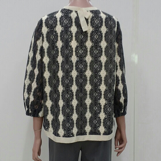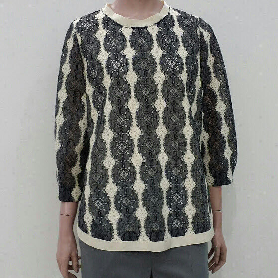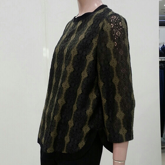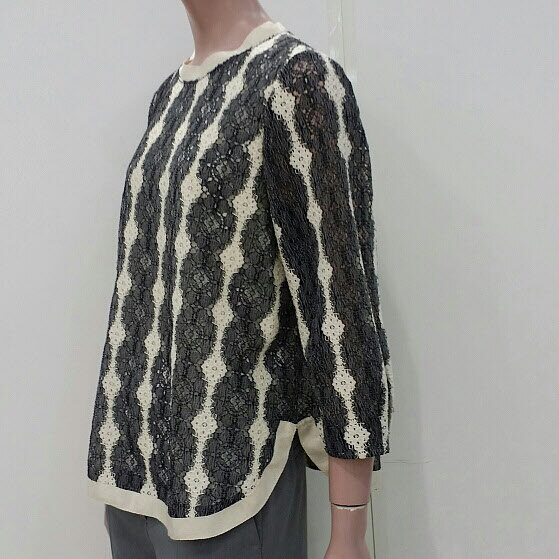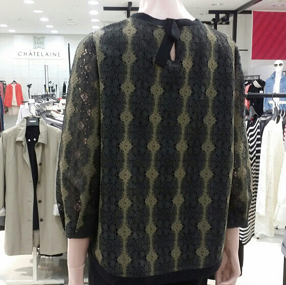코튼 폴리 나일론 혼방의 레이스 블라우스 입니다 레이스에 컬러 배색이 들어가 여러 컬러의 하의와 코디하기 좋고 뫄이드 팬츠 또는 스커트등 다양한 스탈일로 연출하기 좋 습니다기장은 24인치 입니다.