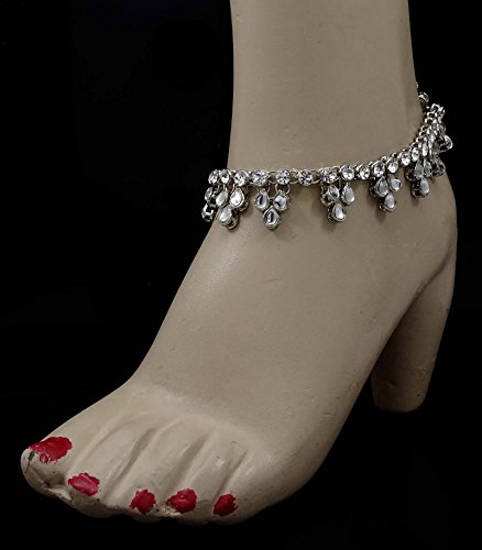 -. Binding : Jewelry -. Brand : Banithani -. Department : womens -. Feature : Add An Edge To Your Traditional Look By Wearing This Pair Of Silvertone Anklets For Women / Sale For: 2 Pair Anklet; Metal: Alloy / Size: 10.5" X 0.7" Inches / SKU: SA1023A ; Made In India / Discover more Beautiful Jewelry from our collection, click on the link "Banithani" above the title. -. Label : Banithani -. Manufacturer : Banithani -. Model : SA1023A -. MPN : SA1023A -. PartNumber : SA1023A -. ProductGroup : Jewelry -. ProductTypeName : FASHIONNECKLACEBRACELETANKLET -. Publisher : Banithani -. Studio : Banithani -. Title : Banithani Barefoot Chain Ankle Bracelet Traditional CZ Indian Payal Anklet Jewelry