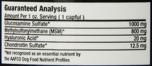 FAST ACTING GLUCOSAMINE: Glucosamine is a natural chemical compound found in the fluid around joints in most animals which helps keep joints' cartilage healthy and functional. However, as aging occurs natural glucosamine levels drop, which leads to gradual joint deterioration. Our Liquid-Vet Dog Joint Formula features all-natural glucosamine sulfate plus 3 other leading joint care ingredients, which when combined form an effective supplement for not only relieving pain in joints, but preventing joint-related issues from worsening.