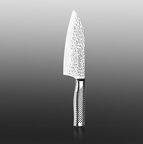 • Hand-Hammered finish blade with unique conical divots ground length and crosswise for minimal resistance while cutting