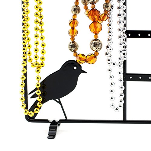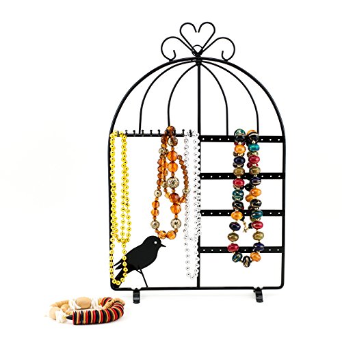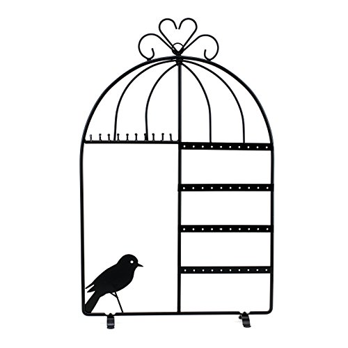 -. Binding : Kitchen -. Brand : Adorox -. Color : Black -. Feature : Product Dimensions: 16" Height x 10.2" Wide / Metal with a black painted finish with sturdy with durable construction / 4 racks with 40 holes for storing 20 pairs of earrings / 10 hooks for necklaces or bracelets / Suitable for home or commercial use (Accessories Not Included) -. IsAutographed : 0 -. Label : Adorox -. Manufacturer : Adorox -. ProductGroup : Home -. ProductTypeName : HOME -. Publisher : Adorox -. Studio : Adorox -. Title : Adorox Black Metal Bird Cage Design Jewelry Display Stand Organizer Showcase
