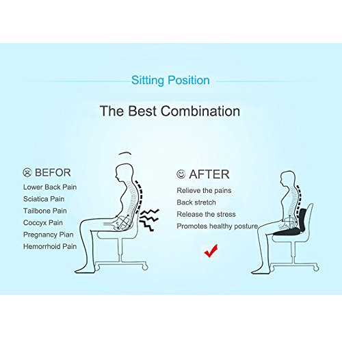 - 1. ERGONOMIC designed U-shape: The specifically U-shaped cushions relieves hip pressure by hugging the thighs and prevents leg numbness due to poor blood circulation, and the back pillow promotes good posture. Support recovery from Lower back and Sciatica pain, Arthritis issues, Herniated discs, Tailbone injuries, Coccyx pain, Hemorrhoids, Pressure sores, Backaches pain, butt pain, Spine pain from child birth and pregnancy pain and other spinal issues.
