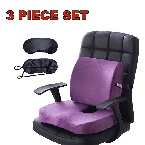 Qutool Orthopedic Memory Foam Seat Cushion and Lumbar Support Back Pillow for Lower Back Tailbone and Sciatica Relief Office Chair and Car Seat Cushion Set with Premium Adjustable Strap (Purple)