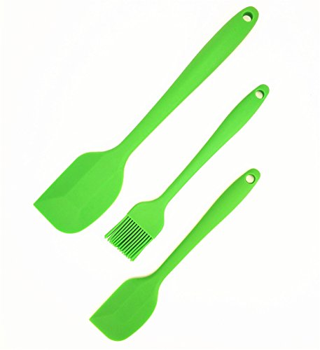 Cream Mixer Baking Silicone Scraper And Brush(3-Pieces Set) (Green)
