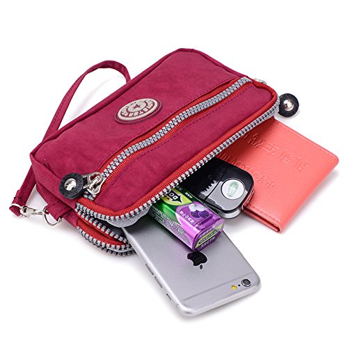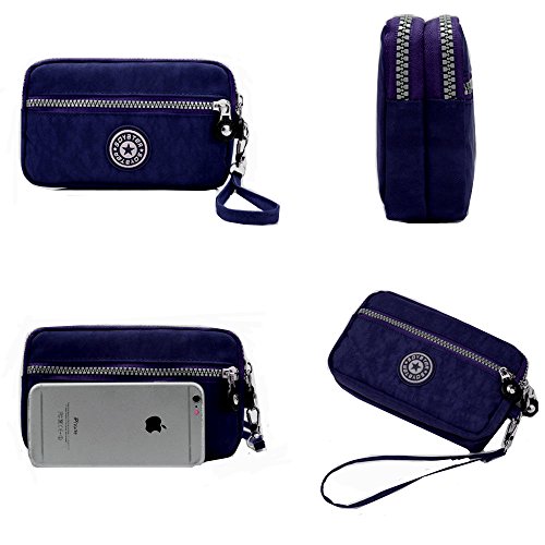-. Feature : ☆ Made of high quality nylon fabric, sturdy, durable and waterproof, also light-weight / ☆ Dimension: 6.7 inch(Length)*2.75 inch(Width)*3.93 inch(Height), wrist strap length: 19cm / ☆ Simple and casual design,you can use it as clutch bag, cell phone pouch, card bag, wristlet bag / ☆ Three zippered compartments design, which can hold cell phone, credit cards, small cosmetics, coins and so on; More easy to organizer your stuffs. / ☆ 100% QUALITY GUARANTEE 100% brand new, accept returns if you're not satisfied with it for any reasons