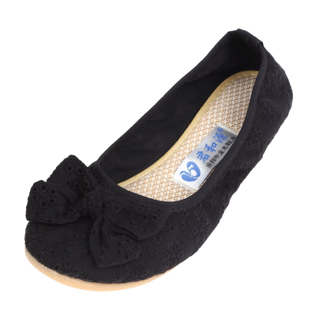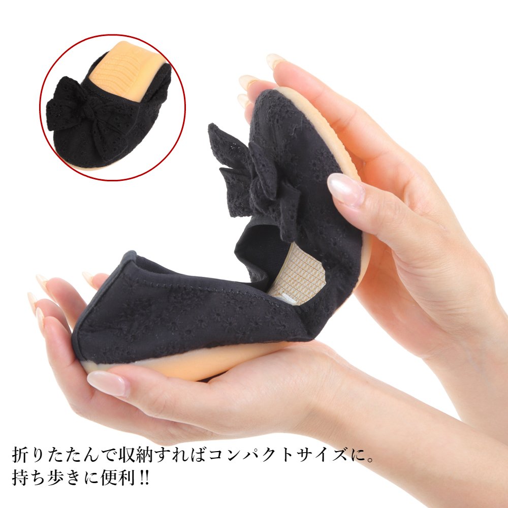 It is a folding slipper of a volley shoe type in which the lace pattern is good good ribbons pretty.