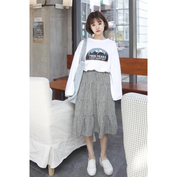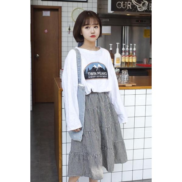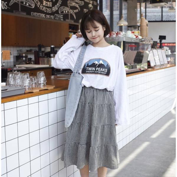 トップスはシンプルなTシャツなどでスカートの柄を活かした着こなしがお勧めです。