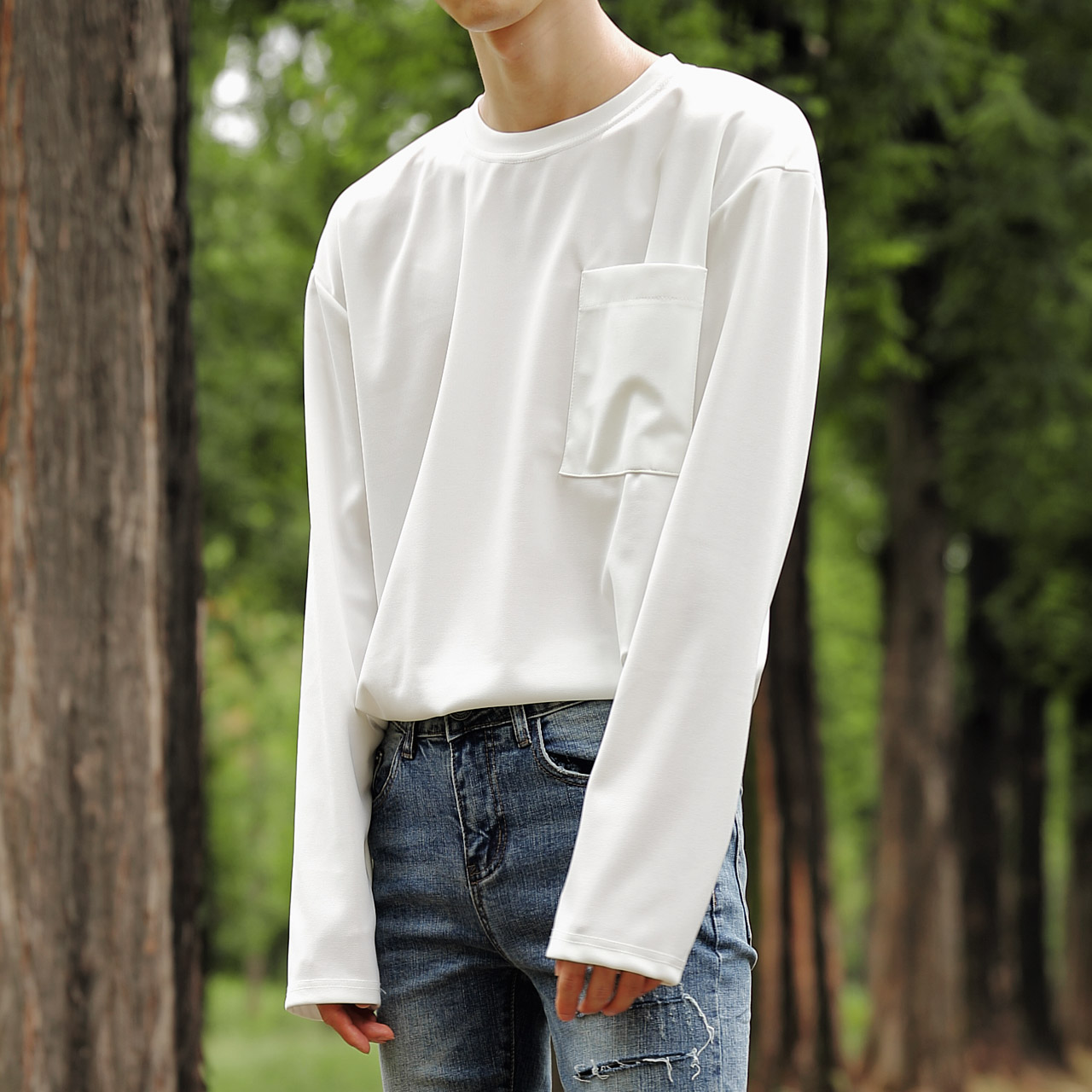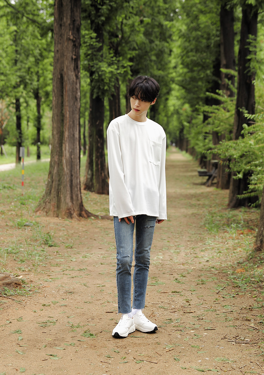 구김없는 오버핏 포켓 티셔츠