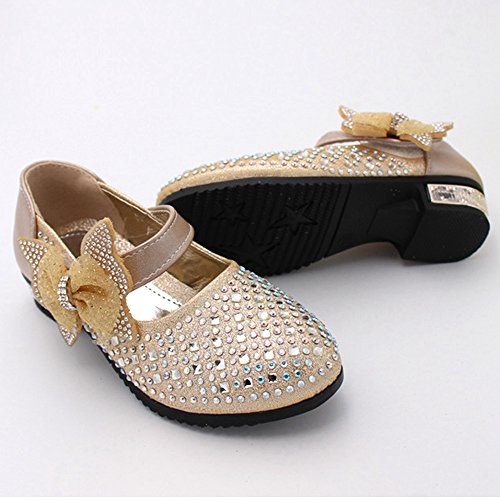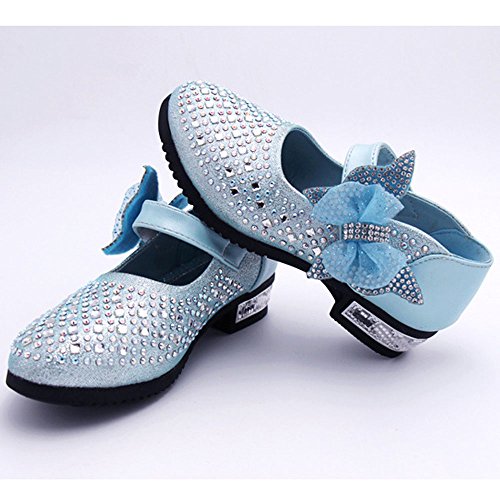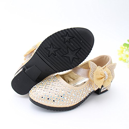-. Feature : Upper material: Synthetic Leather. Sole material: rubber / Function: lightweight rubber sole,non-slip,anti-wear .Heel Type: Low Heel(2 cm) / Closure: Sewn Bow Velcro Closure / Ideal for dancing, costume, party and other special occasions.Safe and comfortable design, Let children's feet relaxed without burden. / Note:1.our shoes carry with Chinese size, it is not standard US size ,maybe you can see our size chart ,and measure your kids' feet length 2.inner length= feet length+0.2 inches
