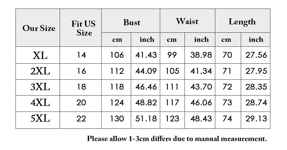 Size:Plus Size (XL 2XL 3XL 4XL 5XL)