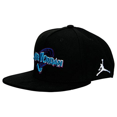 -. Binding : Apparel -. Brand : NIKE -. Color : Black -. Department : boys -. Feature : Celebrate the iconic "Space Jam" movie from the '90s with the eye-catching Kids' Jordan Space Jam Snapback Hat / Features "Air Jordan" and the Space Jam movie logo embroidered on the front / Left side panel showcases an embroidered iconic Jumpman design trademark / 6 panel design with interior tape for comfort / Snapback closure provides a secure, adjustable fit -. ProductGroup : Apparel -. ProductTypeName : HAT -. Size : Youth 8/20 -. Title : Nike Big Kids' Air Jordan Retro Space Jam Snapback Hat
