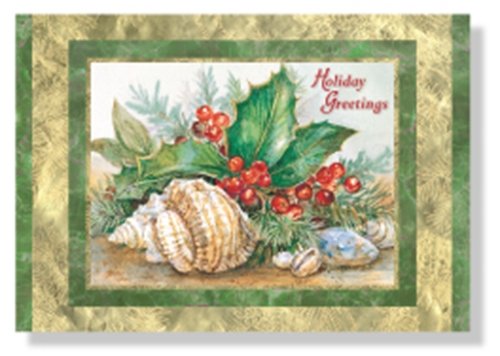 -. Feature : Fine Nautical/Coastal Designs / Verse reads "May peace and love, good health and friends bring holiday joys that never end." / Embellished with foil, embossed and spot uv treatments. / 18 Cards and envelopes / Seashells and holly.