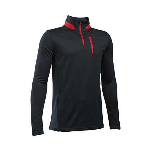 4-way stretch fabrication allows greater mobility in any direction. Moisture Transport System wicks sweat & dries fast. 1/4 zip collar with ribbed piecing detail. Branded zipper chest pocket.Feature