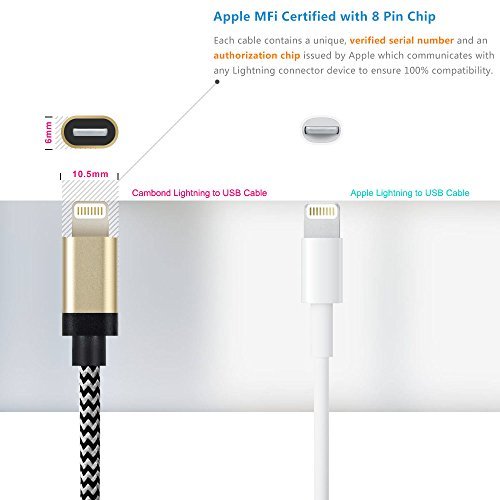 Apple MFi Certified Lightning Cable: Complete charge and sync compatibility with iPhone SE, iPhone 7, iPhone 7 plus, iPhone 6s / 6s Plus (2015), iPhone 6 / 6 Plus (2014), iPhone 5s / 5c / 5, iPad Air / Air 2, iPad mini / mini 2 / mini 3 / mini 4, iPad Pro, iPad (4th generation), iPod nano (7th generation), and iPod touch (5th generation).