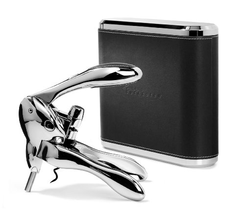 Amazon.com Review This luxury edition Sterling Rabbit corkscrew and genuine leather-and-chrome presentation case will even wow even the wine connoisseur who (thinks) he or she has everything. Metrokane makes this Rabbit completely out of die-cast metal for superior strength, and finishes it in polished chrome. Soft black leather grip pads on the corkscrew lever provide a sure, comfortable grip and match the black leather wrap on the elegant presentation case, the base and top of which also feature polished chrome. A chrome foil cutter and extra spiral are included in the case, which handsomely stores the Rabbit. Award-winning for its innovative design, the Rabbit corkscrew opens any wine bottle in just three seconds. Squeeze the Rabbit's arms around the bottle, push the lever down, pull up, and the cork is out. To remove the cork from the spiral, simply lower and raise the lever again. Hardened all-metal teeth on the gear mechanism ensure that the corkscrew will open up to 20,000 bottles (when the spiral is replaced every 800 to 1,000 pulls). The spiral, also called a worm, is made of high tensile steel coated with a nonstick finish, and features mini-bearings in the head. Metrokane covers the Sterling Rabbit with a 10-year warranty against defects. --Ann Bieri 0